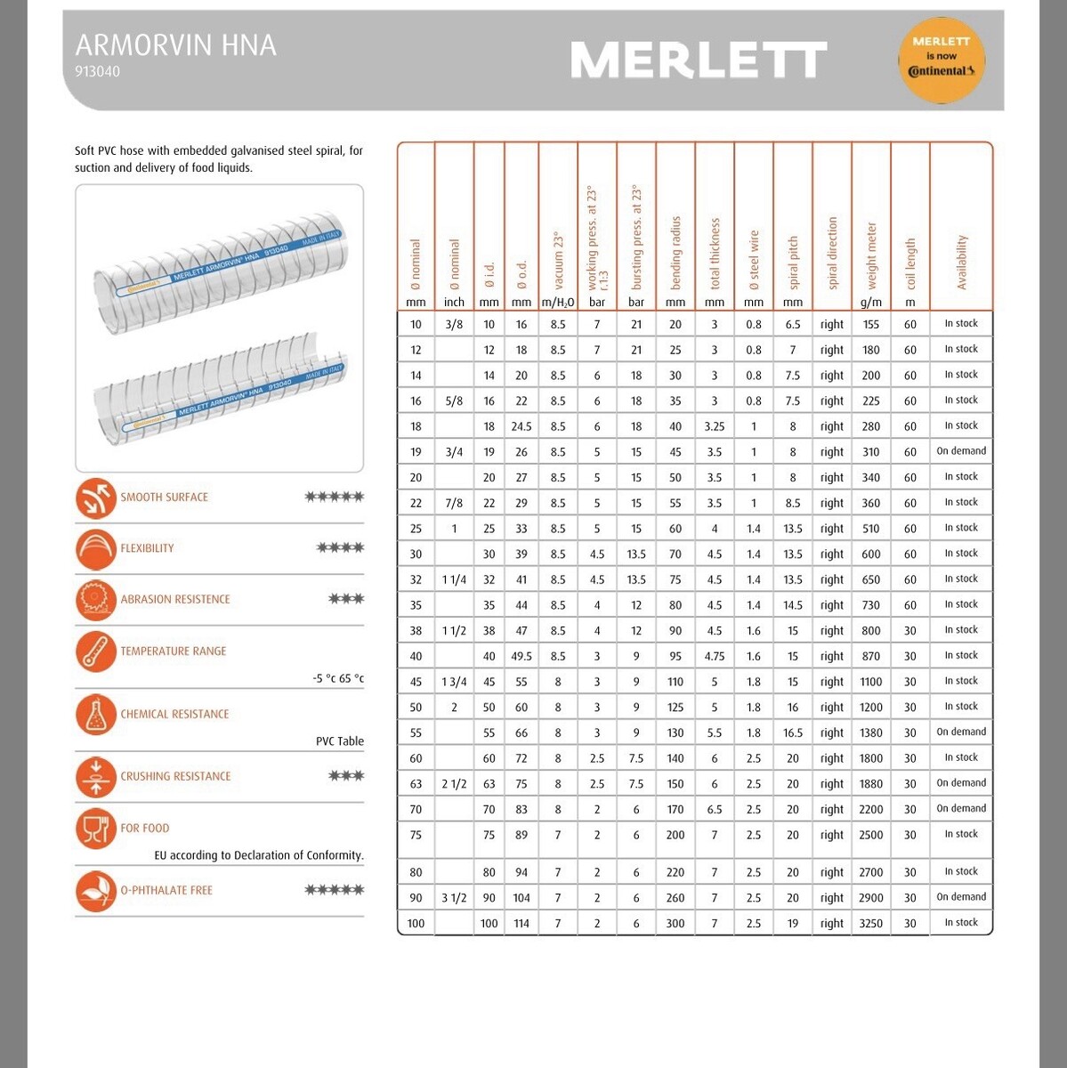 Continental Merlett Armorvin HNA 913040 19mm ID hose 10 Meters