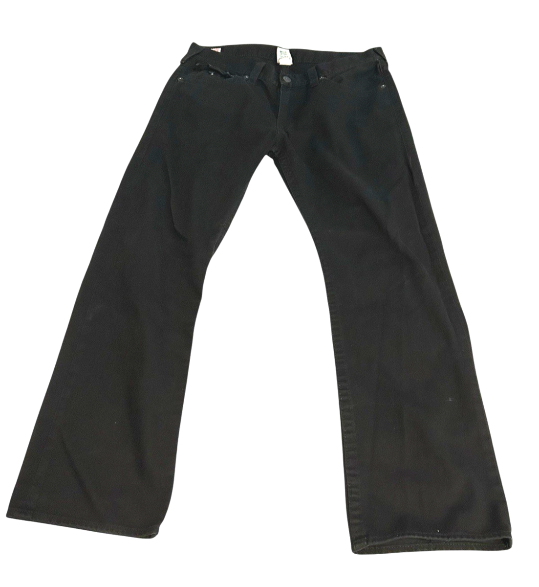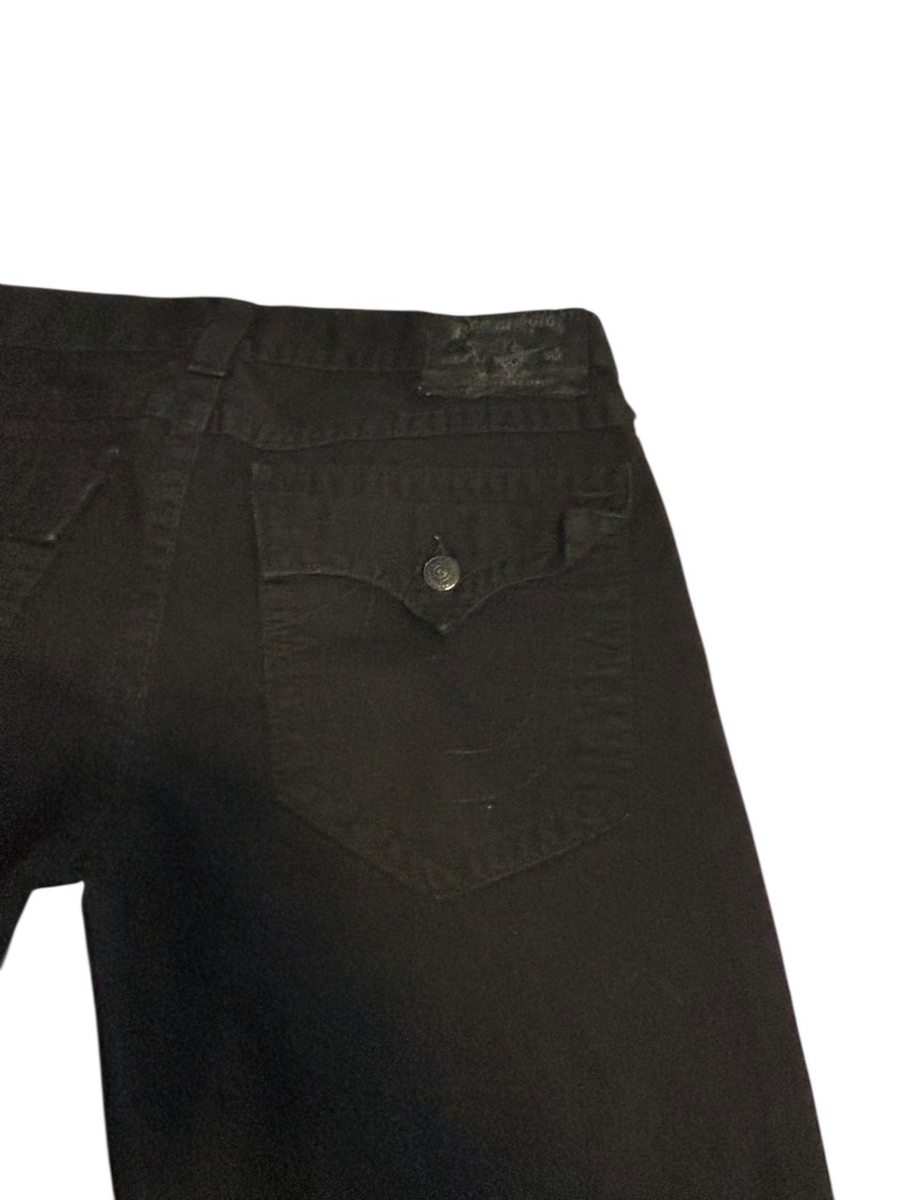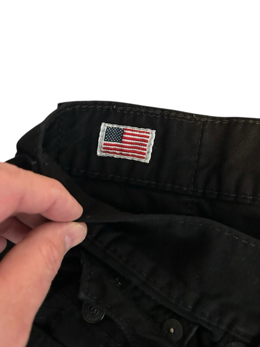 True Religion Ricky Relaxed Straight Solid Black Pants Pocket Flap 35x32