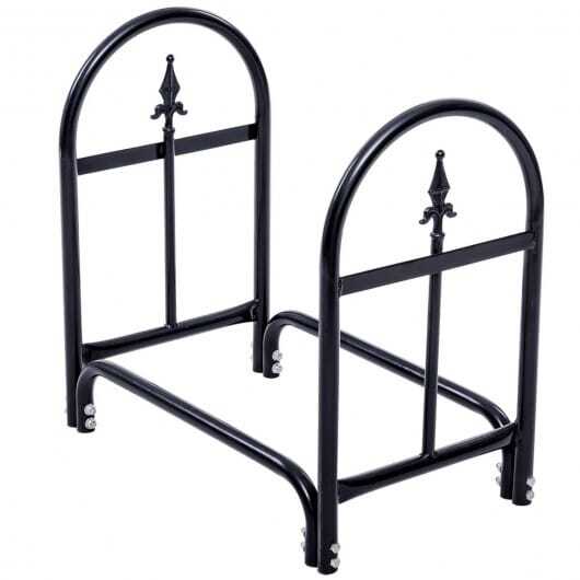 Brand new and high quality Neatly stacks firewood off the ground Keeping firewood off the ground eliminating bugs mold growth and wood rot Black weatherproof powder coated finish Easy to clean Heavy steel tube construction Deluxe outdoor log rack Assembly required