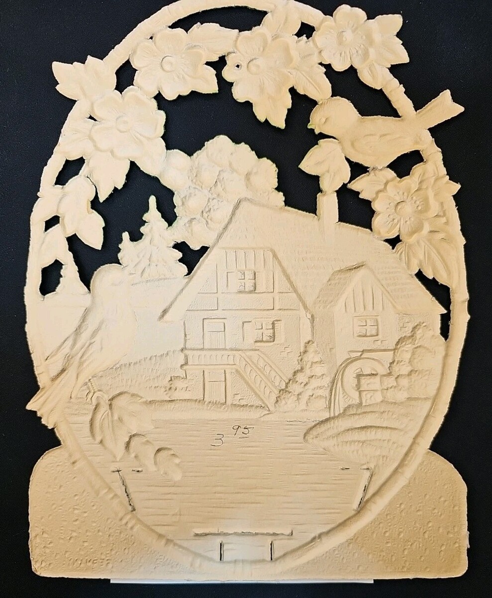 Antique 1927 Die Cut Embossed Paper Calendar Birds Cottage Scenic