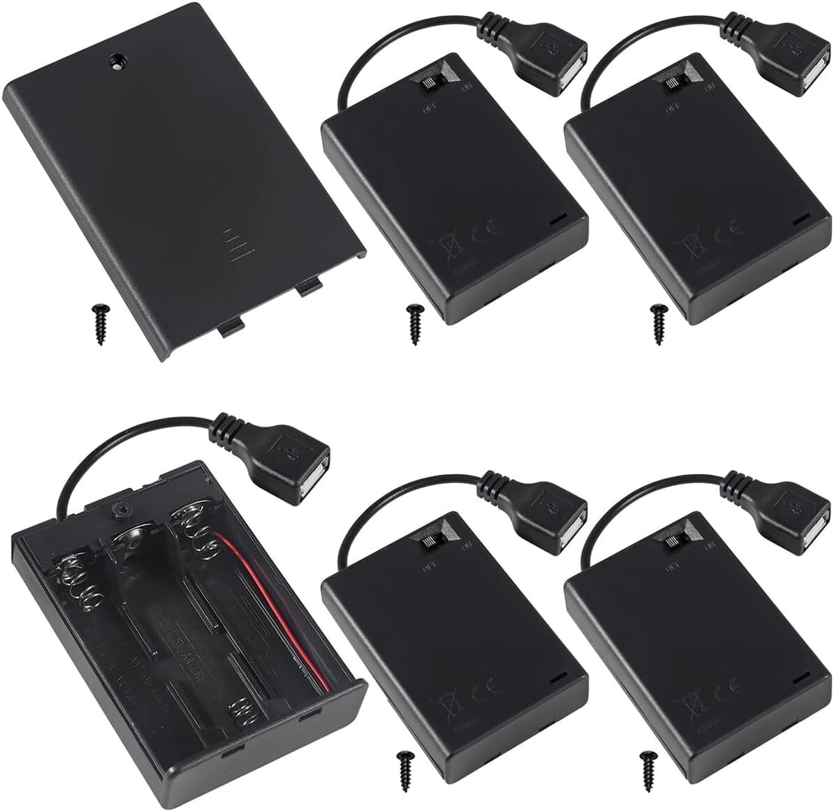 Package Content. :5 x 3 AA battery holder with USB and switch; 5 x screws.