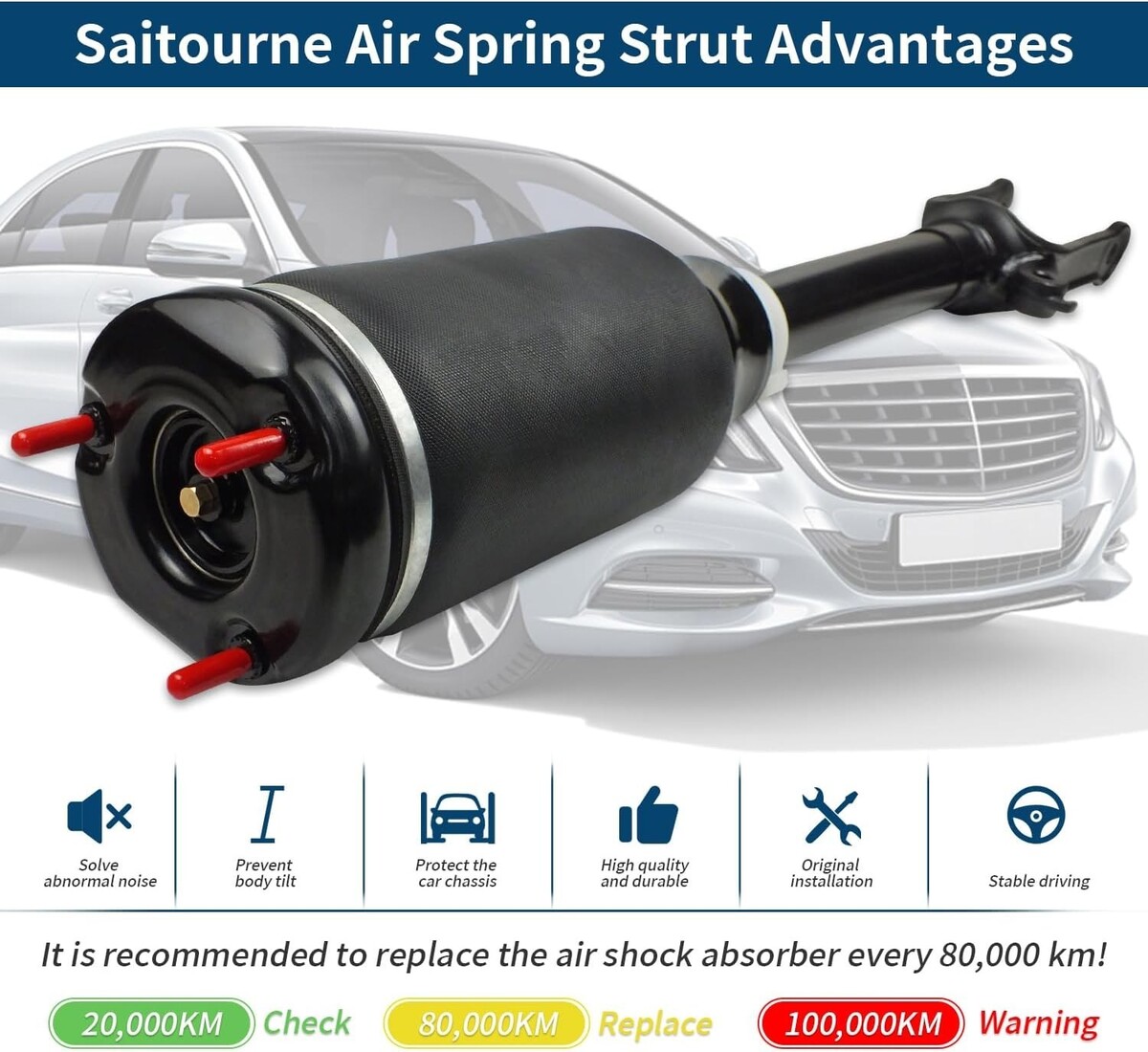 Superior Performance: Equipped with advanced damping technology, saitourne front air shock absorber effectively absorb bumps, potholes, and vibrations on the road, providing you with a comfortable and quiet ride. They help maintain proper tire contact with the road surface, enhancing handling and stability, especially during sharp turns and sudden braking maneuvers. This means you can drive with confidence, knowing your vehicle is well-supported and responsive