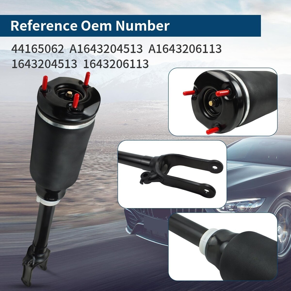 Vehicle Application: our front air shock is designed specifically for Mercedes Benz W164 ML320 2007-2008, ML350 2006-2011, ML450 2010-2011, ML500 2005-2007, ML550 2008-2011; for Mercedes Benz X164 GL320 2007-2009, GL350 2010-2012, GL450 2007-2012, GL550 2008-2011