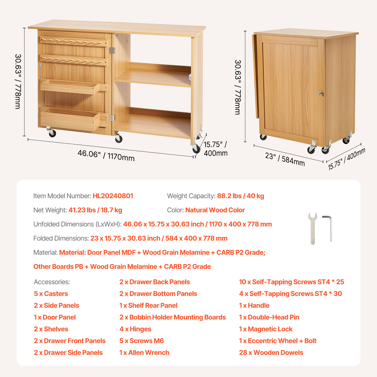 VEVOR Folding Sewing Table, Multipurpose Table with Compact Design, Wood Color