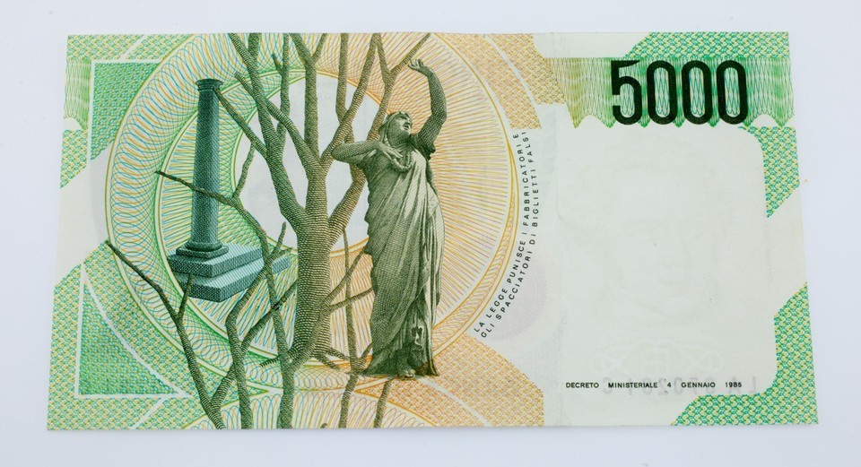 1985 Italia 5000 Liras Nota Condicion AU Pick #111a