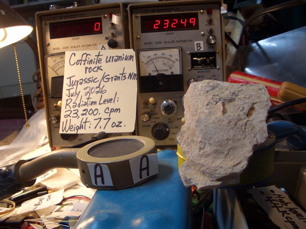Weight: 7.7 oz. Radiation: 23,200. CPM (counts-per-minute)