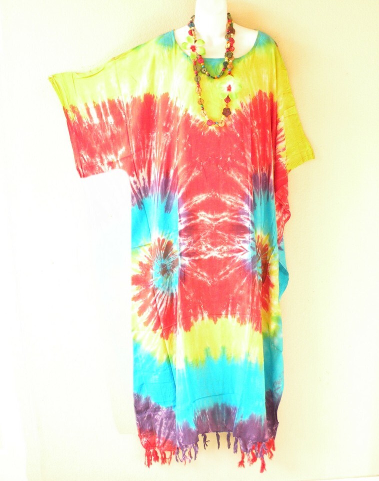 KG28 Tie Dye Women Plus Kaftan Kimono Abaya Hippie Maxi Long Dress -up to 5X