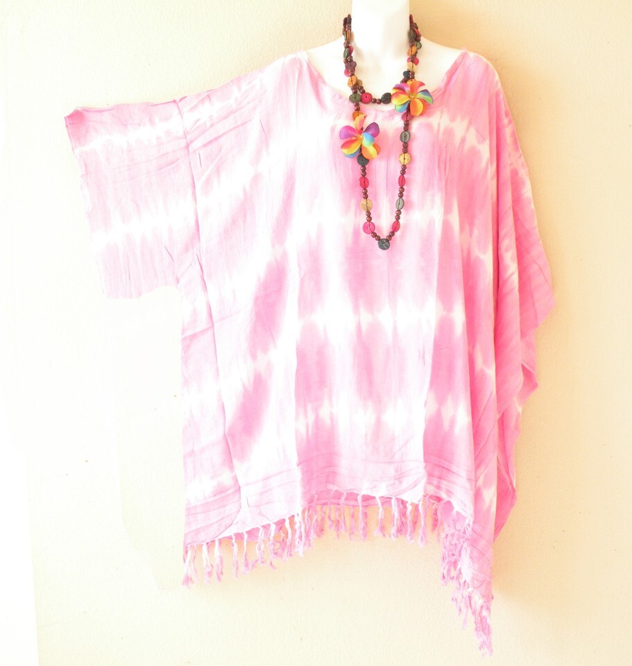 KB433 Pink Tie Dye Women Plus Size Kaftan Poncho Tunic Women Blouse Top up to 5X