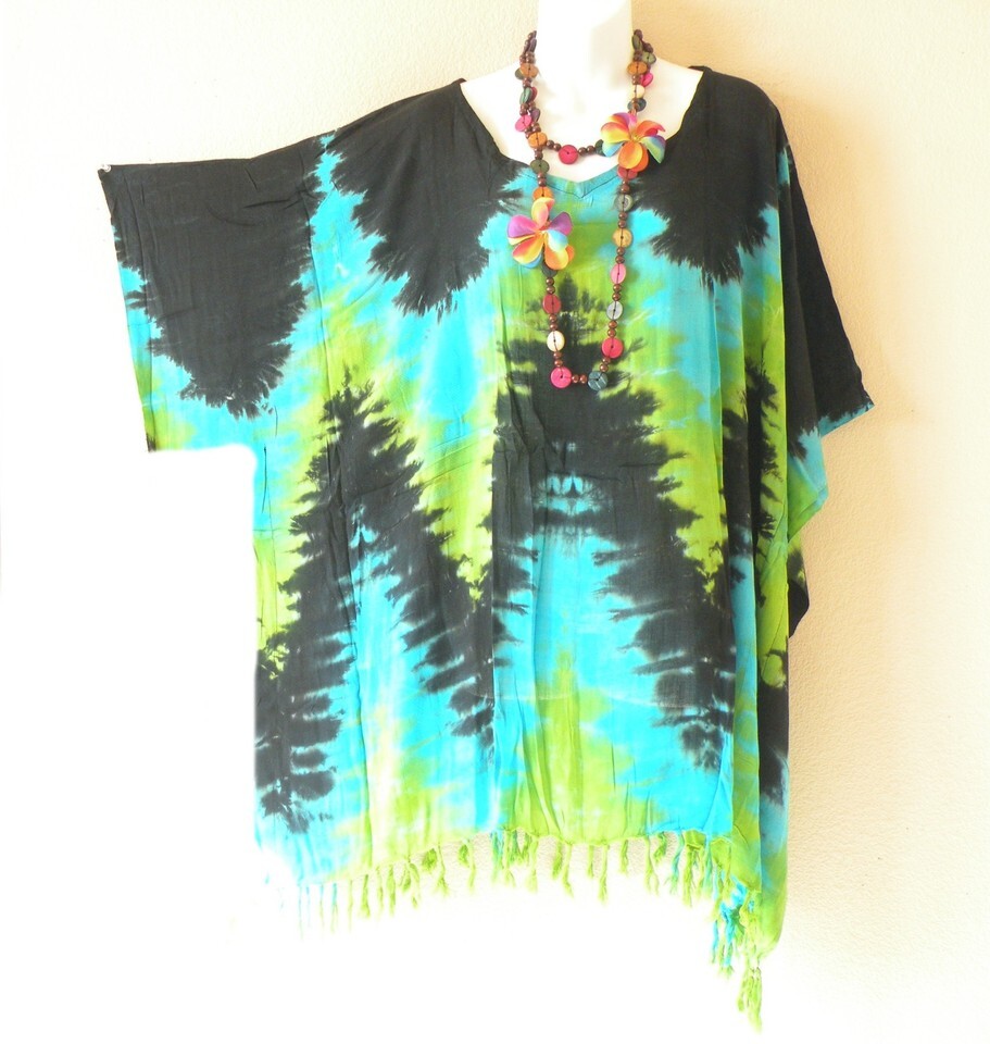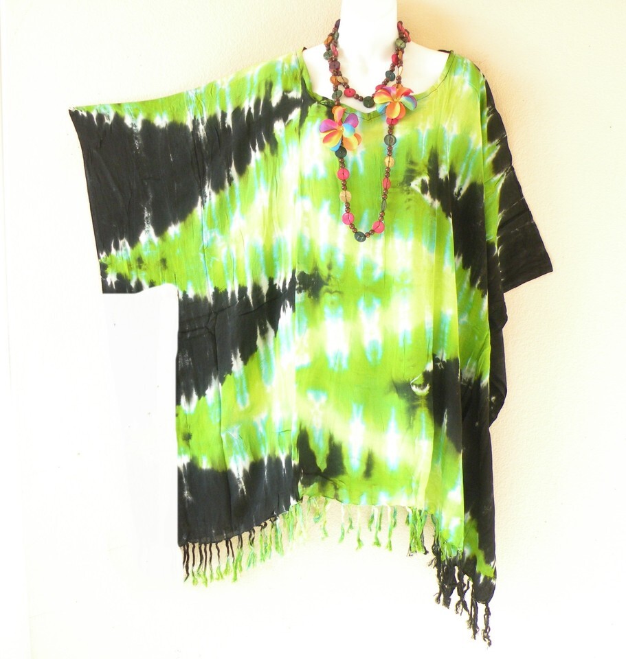 KG122 Tie Dye Zig Zag Batik Tunic Kimono Poncho Hippy Rayon Women Blouse Top