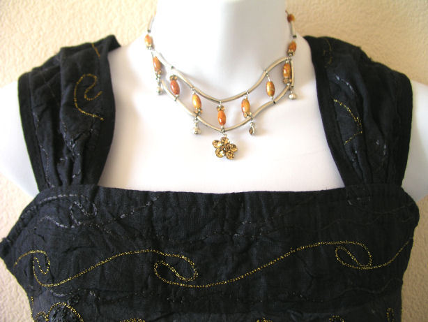 This long blouse or top is worn on a formal occasion with long black pants.