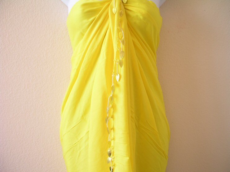 This sale is for one Beaded Wrap Around Sarong Pareo with hanging Beads with Molded leafs shapes. This pareo has a unique hanging beads stitching design at both ends that results in a visually stunning pareo. Pareo are made from High Quality Rayon.