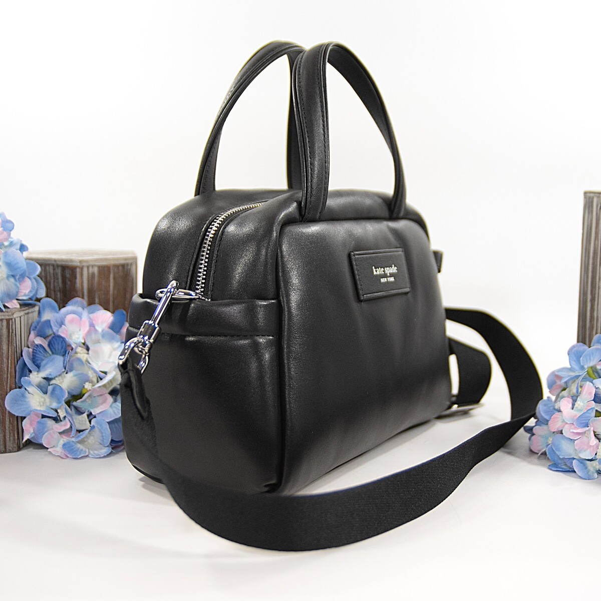 Kate Spade Black Puffy Leather Satchel Crossbody Bag NWT