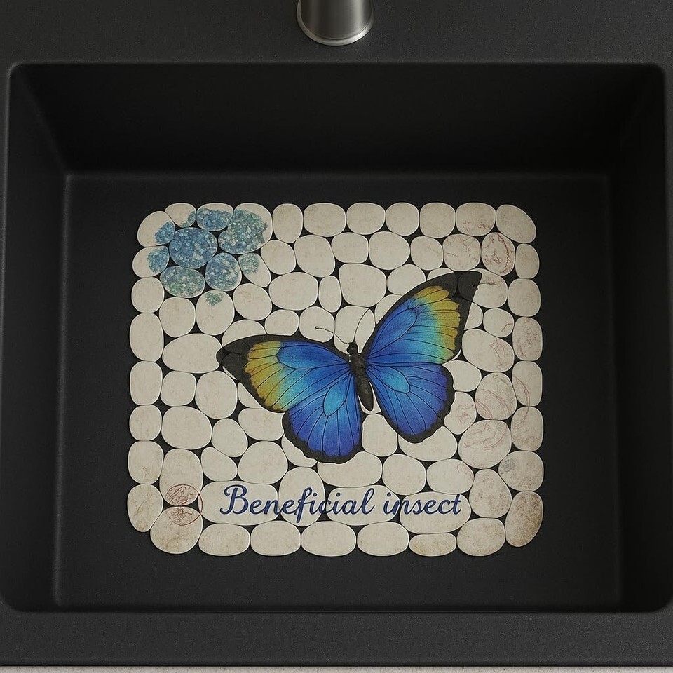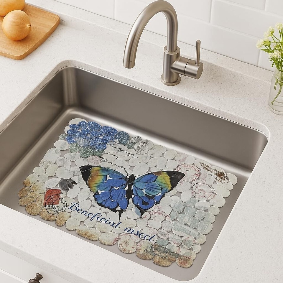 Printed PVC Sink Mat 15.7"x11.8" Flexible Pebble Sink Protector – Butterfly