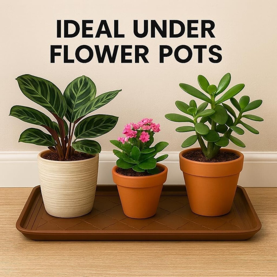 Keep floors clean and protected with this 2 pack of brown boot trays. Each tray measures 16.5" x 12.5" and is made from durable polypropylene with a waterproof design. The raised edge helps contain water, mud, snow, and dirt from shoes and boots. The textured non-slip surface keeps footwear in place, and the trays clean easily with a quick rinse. Perfect for entryways, mudrooms, garages, patios, pet feeding areas, and plant storage.