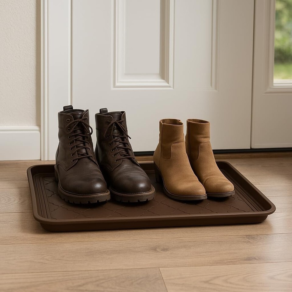 2 Pack Brown Boot Trays 16.5"x12.5" Waterproof Shoe Mats Floor Protectors