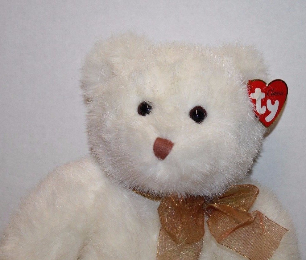 Ty Classic Lacey Teddy Bear 12" White Plush Stuffed Soft Toy Sits Gold Bow 2002