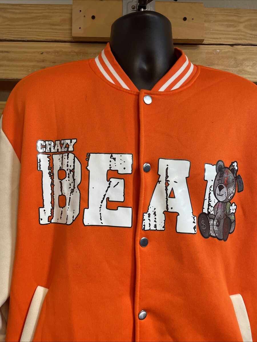 Manfinity Beat Drop Craze Bear Orange Varsity Jacket Urbanwear Men's Size XL KG