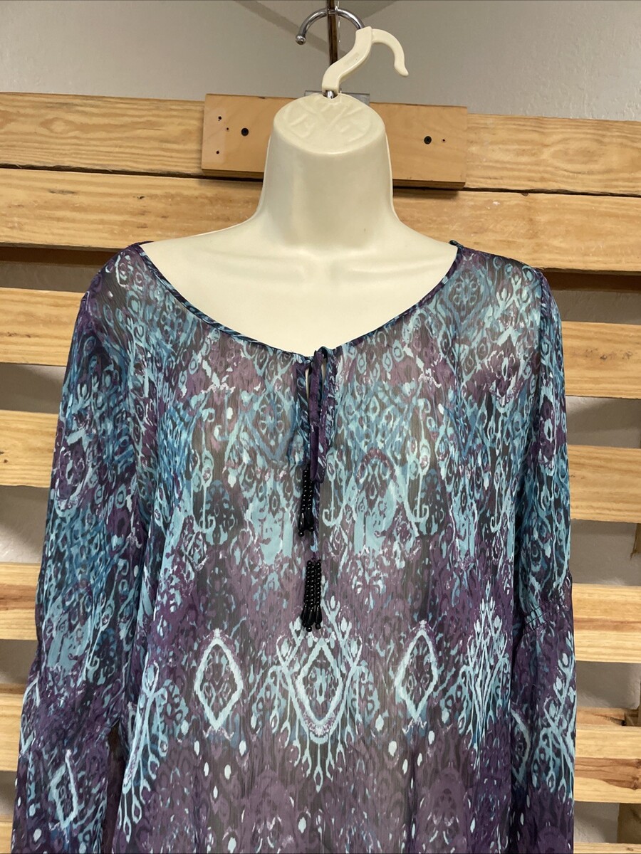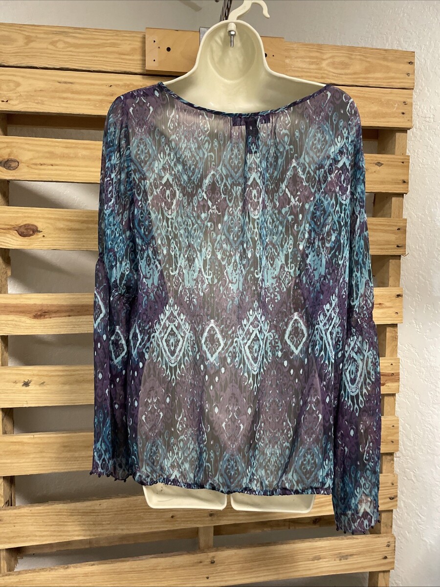 INC International Concepts Sheer Boat Neck Blouse Woman's Size 12 KG JD