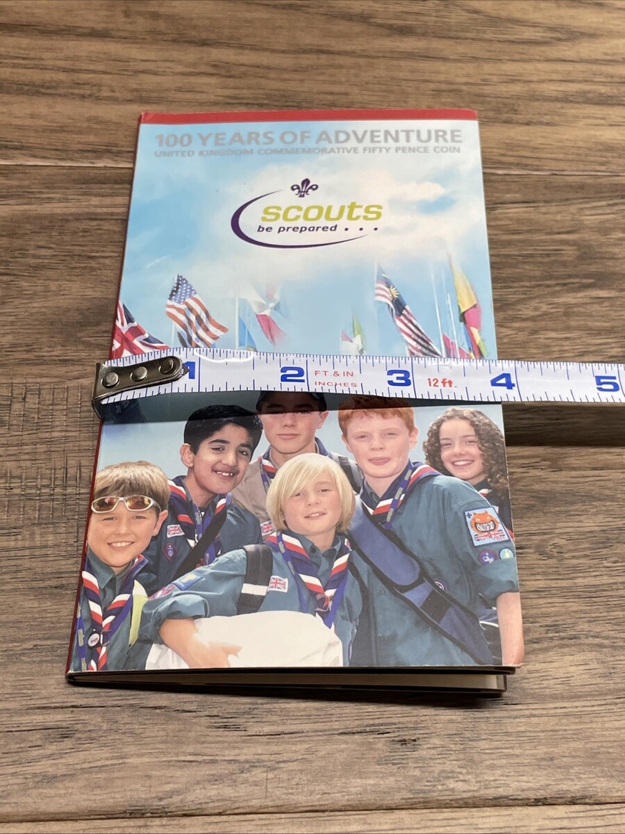 Good displayable condition. Comes in the 100 years of adventure scouting pamphlet put out in 2007. Coin has never been circulated. The lining to hold the coin in has come apart. Please see pictures for condition details and measurements.