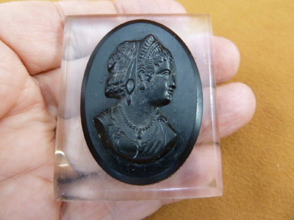 (c1562) Woman in tiara black mourning 1950's cameo pin jewelry brooch vintage
