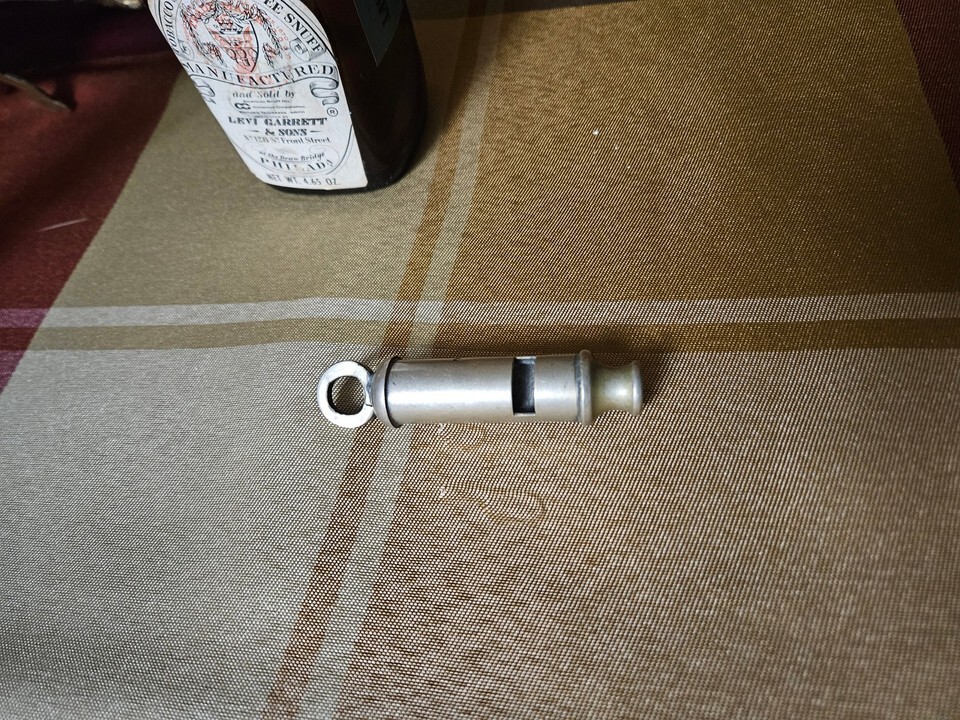A beautiful original antique police whistle by J. Hudson Co. of Birmingham, England, makers of the iconic Metropolitan Police whistles.
