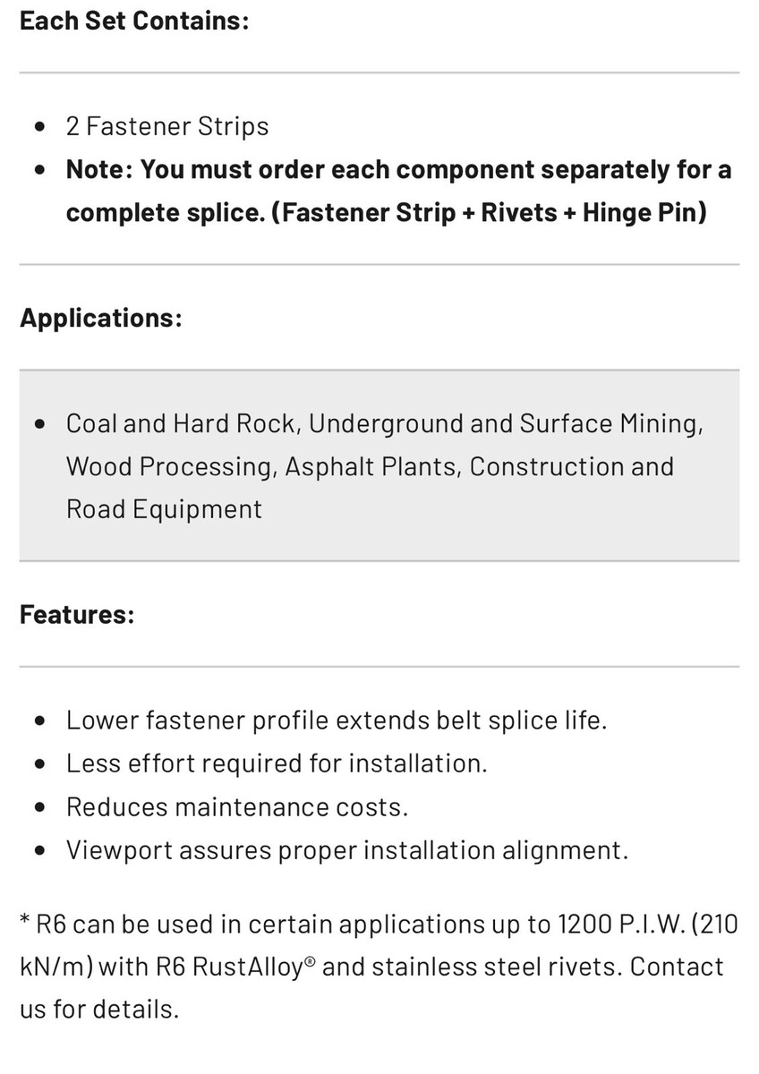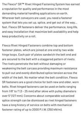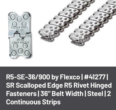 2-Flexco SR scalloped edge, R5-SE-36/900 Steel, hinged, belt fasteners strips.