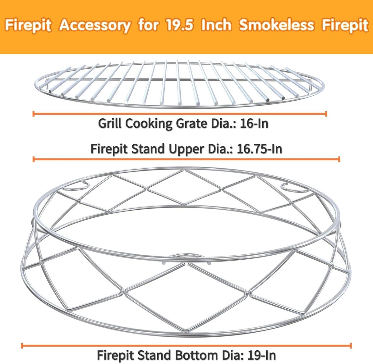 Double-duty Stainless Steel Fire-pit Stand: Elevate your firepit with the Bonfire/Explorer Stand to make it be used on more heat sensitive surfaces such as your wooden outdoor patio, etc. You can also use it to lift the cooking grate to get the lower heat than which the grill grid is directly placed on the firepit.