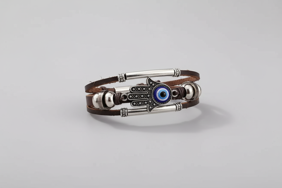 Hamsa Bracelet with Blue Evil Eye & Silver Accents for Men Women Stylish Metal D