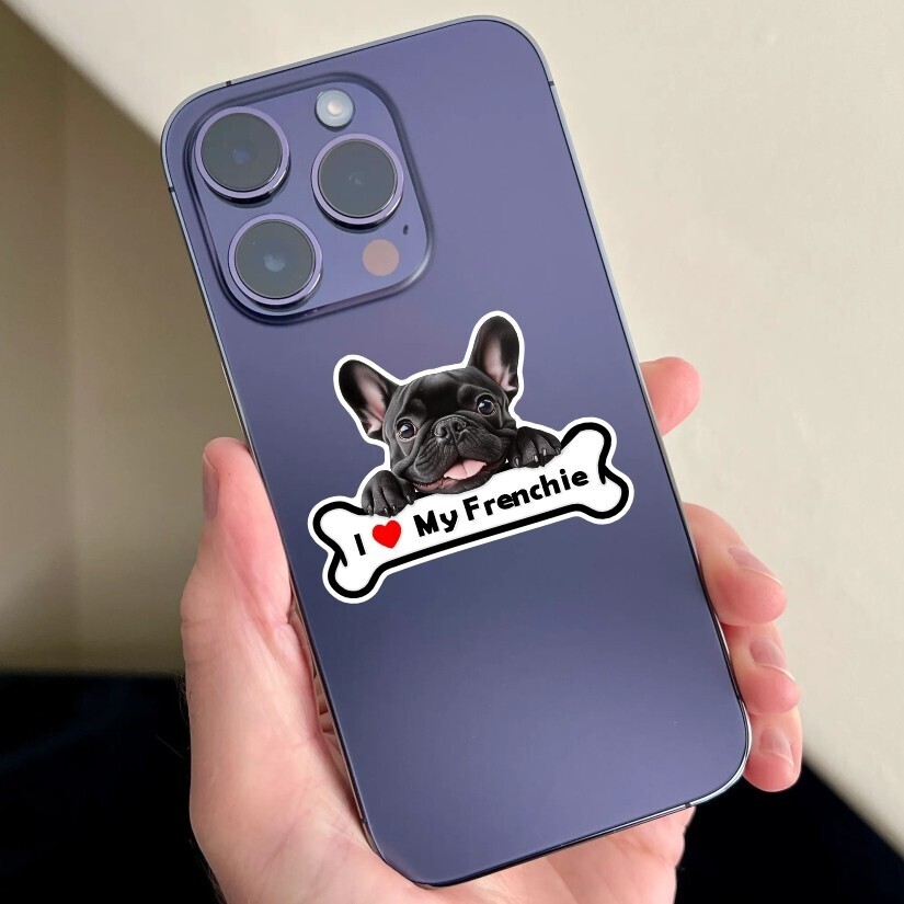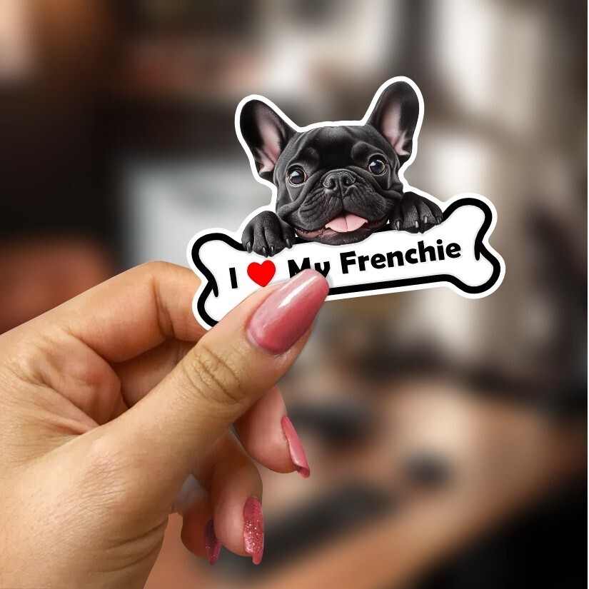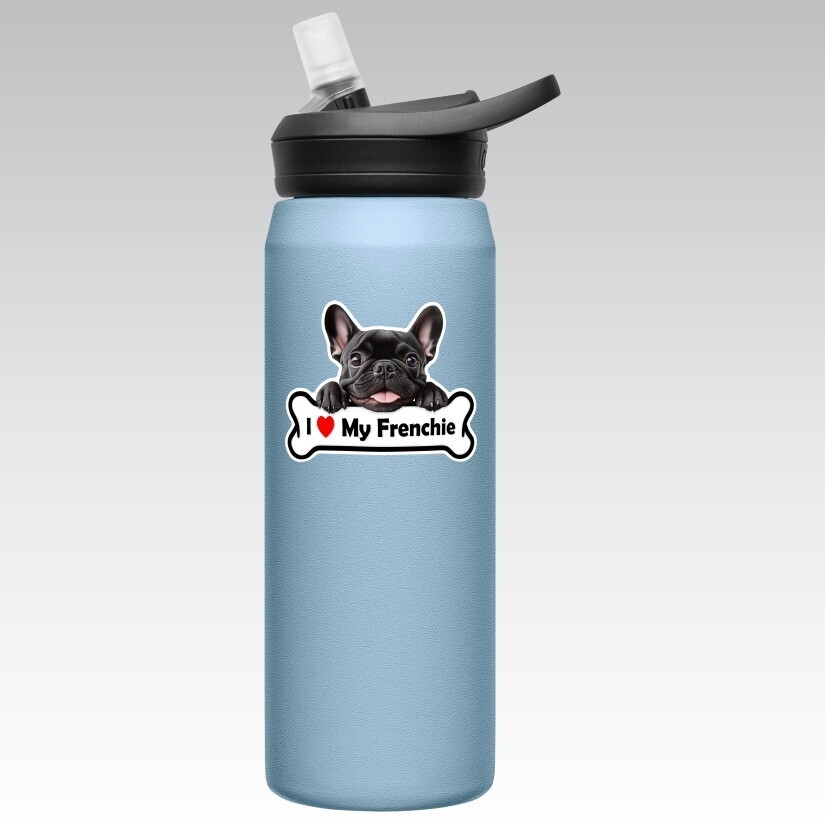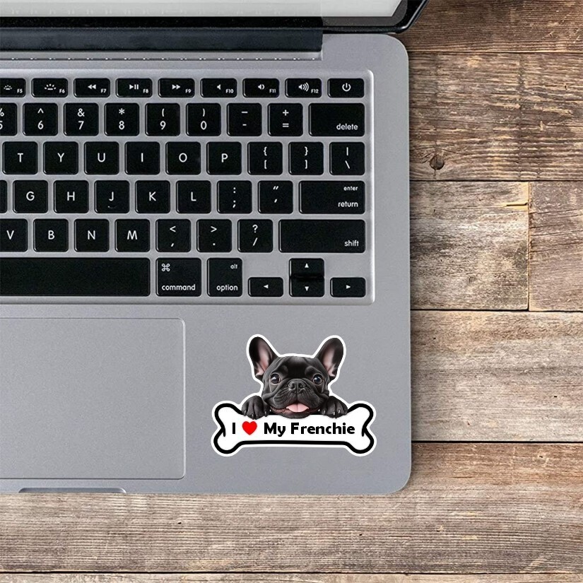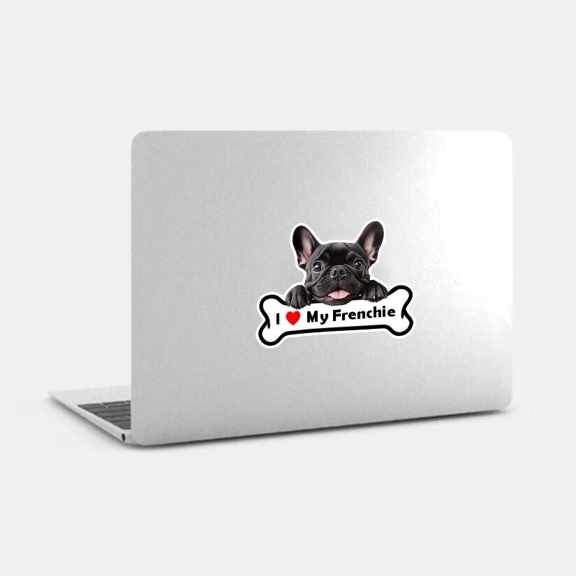 This premium ?I Love My Frenchie? vinyl sticker is precision cut and made from durable, glossy vinyl. Designed to look great on cars, laptops, water bottles, mailboxes, and more.