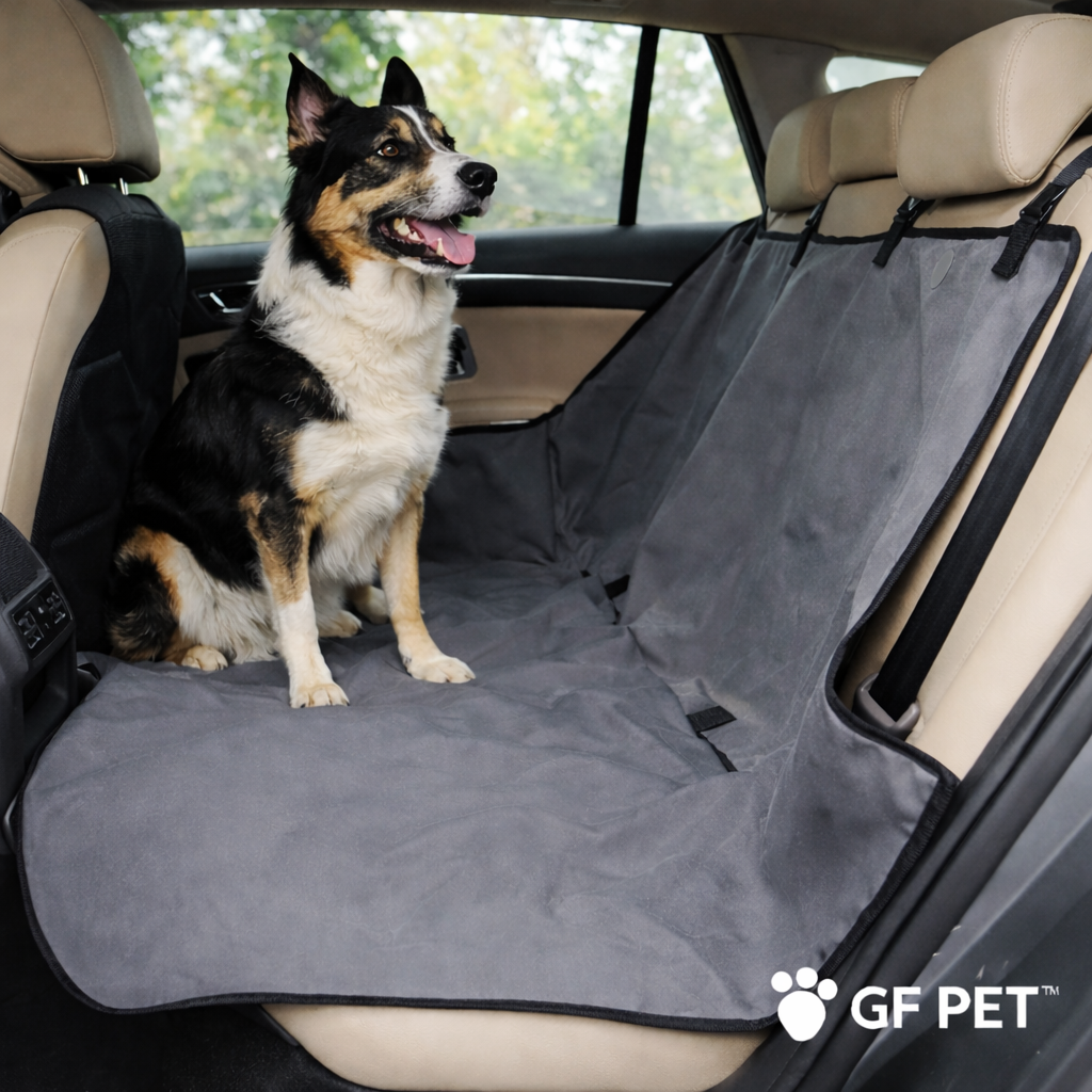 A capa de banco GF PET protege o banco traseiro do carro durante viagens com seu cachorro. O tecido impermeável ajuda a manter o veículo limpo e protegido.