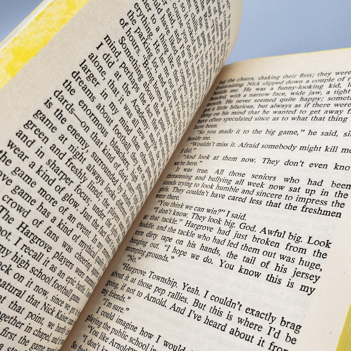 Vintage first paperback edition of Football Dreams by David Guy, which tells a coming-of-age story set at a fictional all-boys prep school. This 5th printing of a Signet book was published by The New American Library Inc. in 1982. It measures approximately 7" tall, 4-1/4" wide, 3/4" thick overall.
