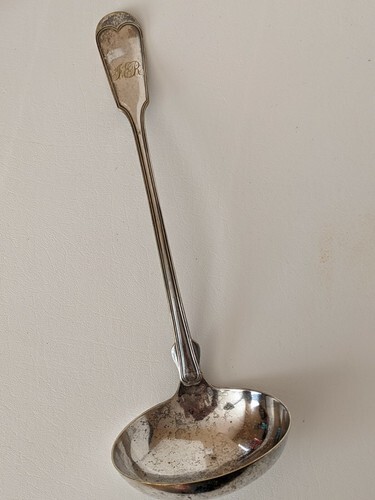 Up for sale is an Antique Hall Elton Silver Plate Soup Ladle Spoon 12.5 " Monogramed.