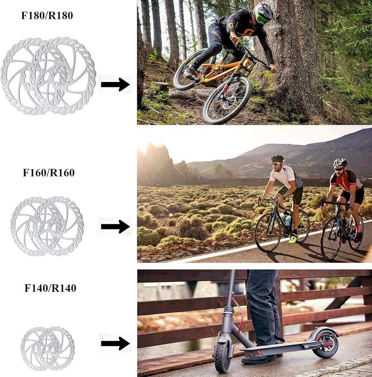 Complete Solution: a whole brake system with 2 aluminum front and back caliper(51mm), 2 of aluminum bicycle brake handle, 2 of stainless steel 160mm Rotors, 2 sets of 6 bolts, cable