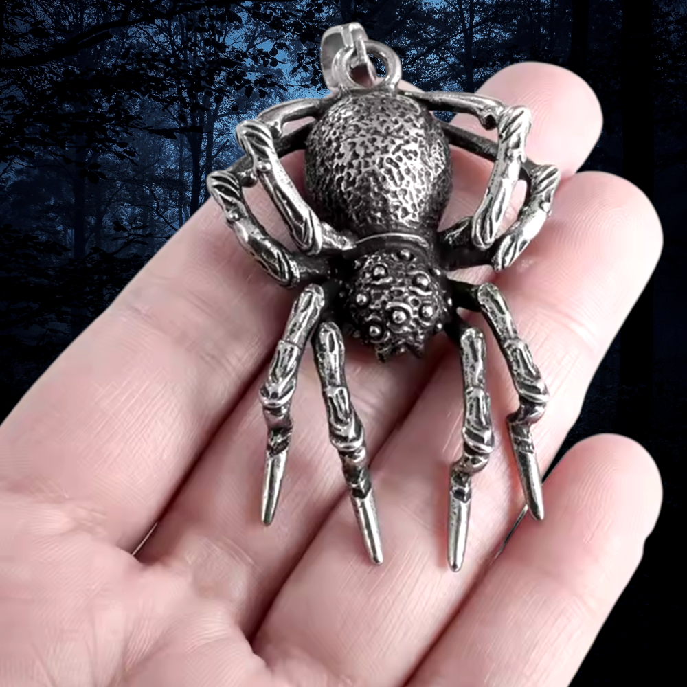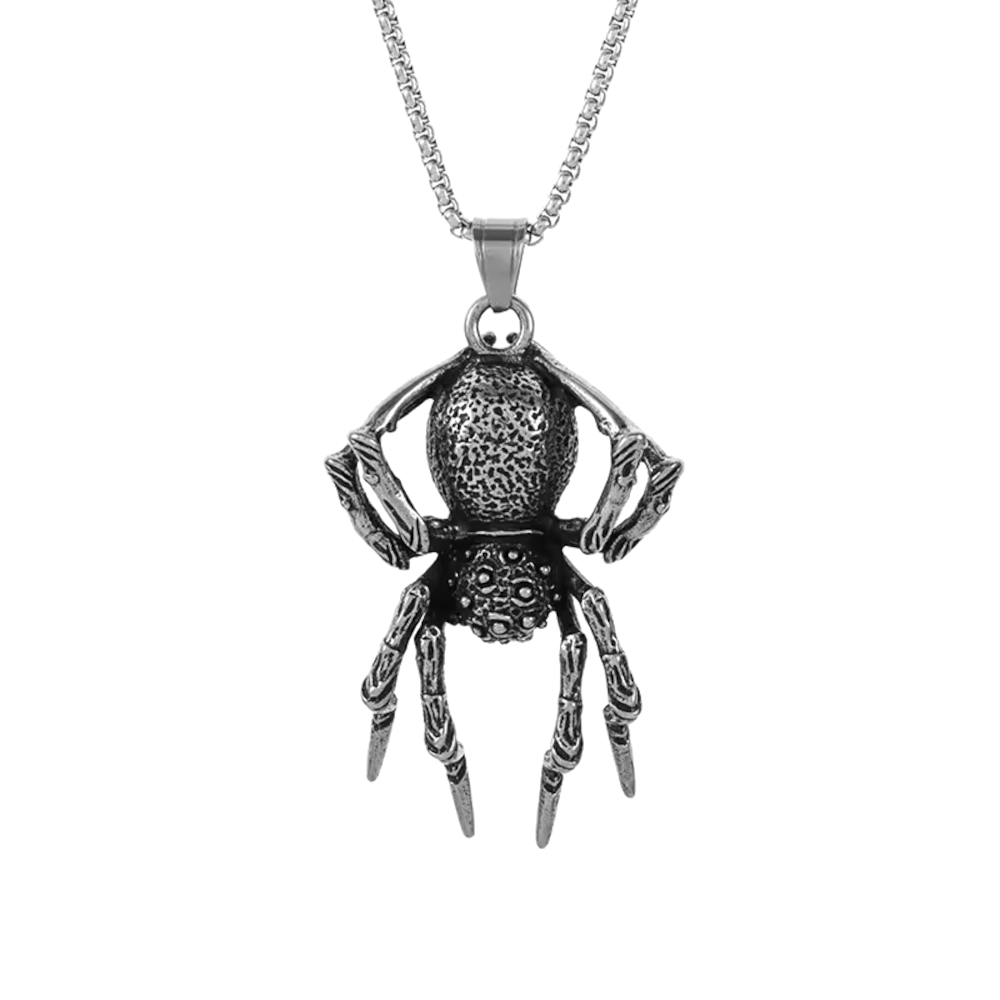 Make a bold statement with this striking Gothic spider pendant and necklace set crafted from premium stainless steel. The intricately detailed spider design features a textured body and articulated legs that capture light beautifully, creating an eye-catching piece of biker jewelry. Weighing in at 19.5 grams, this durable pendant comes with a matching stainless steel chain with a secure lobster clasp closure. The pendant's dimensional design and meticulous craftsmanship showcase exceptional attention to detail, from the spider's segmented legs to its detailed abdomen. Perfect for those who appreciate edgy, alternative jewelry, this necklace set offers both style and biker-grade durability. Whether paired with casual wear or leather gear, this distinctive piece adds a distinctive edge to any outfit.