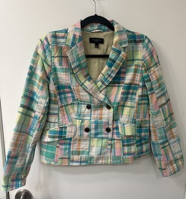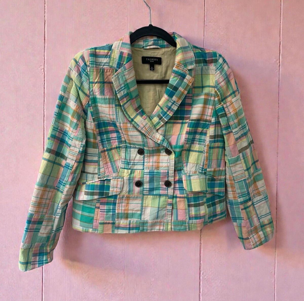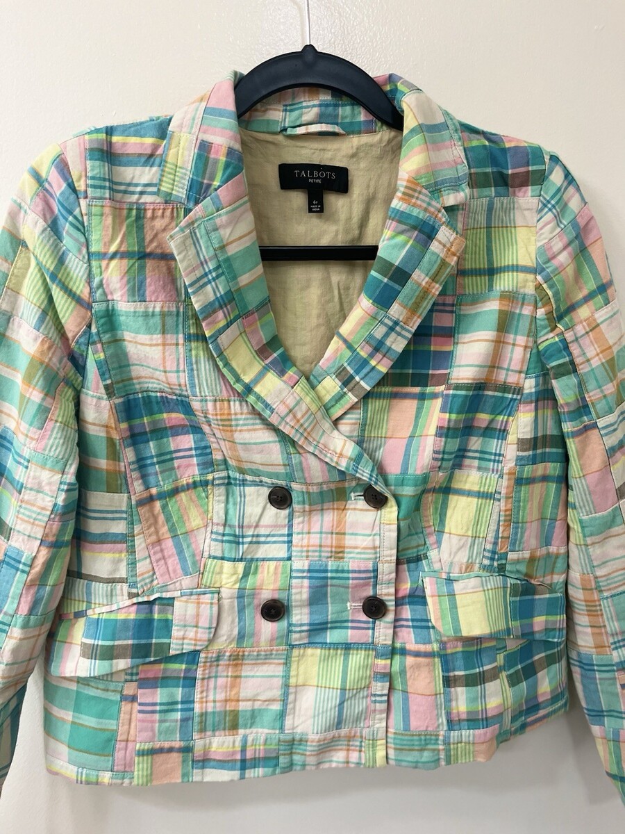Talbots Petite Size 6P Pink Blue Green Plaid Blazer Jacket Preppy Academia