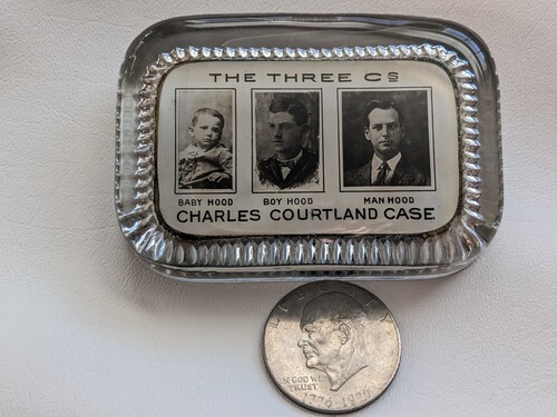 Up for sale is a antique Charles Courtland Case 3 Cs St Louis MO Button Glass Advertising Paper Weight.