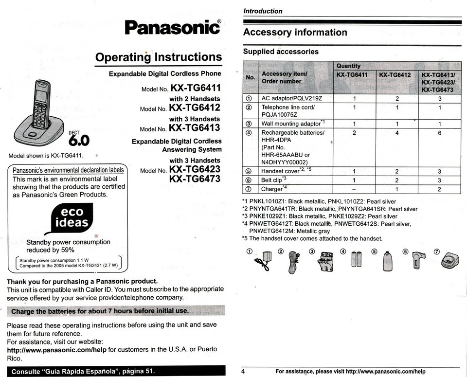 For phones: KXTG6411, KXTG6412, KXTG6413, KXTG6423, KXTG6474