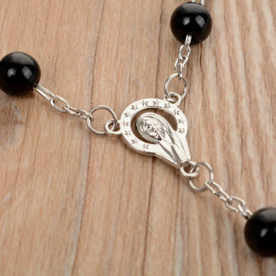 Black Bead Rosary Necklace