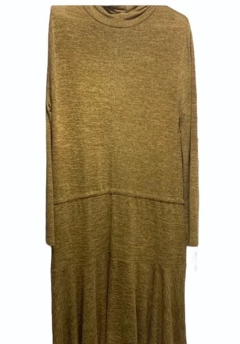 The Anthropologie Sunday In Brooklyn cowl-neck sweater dress in gold/brown color is a stylish and cozy option for casual occasions during the winter and fall seasons. Made from knit fabric, this knee-length dress features a solid pattern, cowl neck neckline, and a pullover closure for easy wear. With a size XL and the Anthropologie brand, this sweater dress is designed for women who appreciate a blend of comfort and style in their wardrobe. Perfect for adding a touch of warmth and sophistication to any outfit.