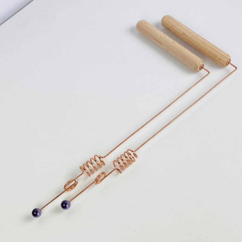 2 Amethyst Copper Dowsing Rods with Crystals – Spiritual Divining Rods – Auramet