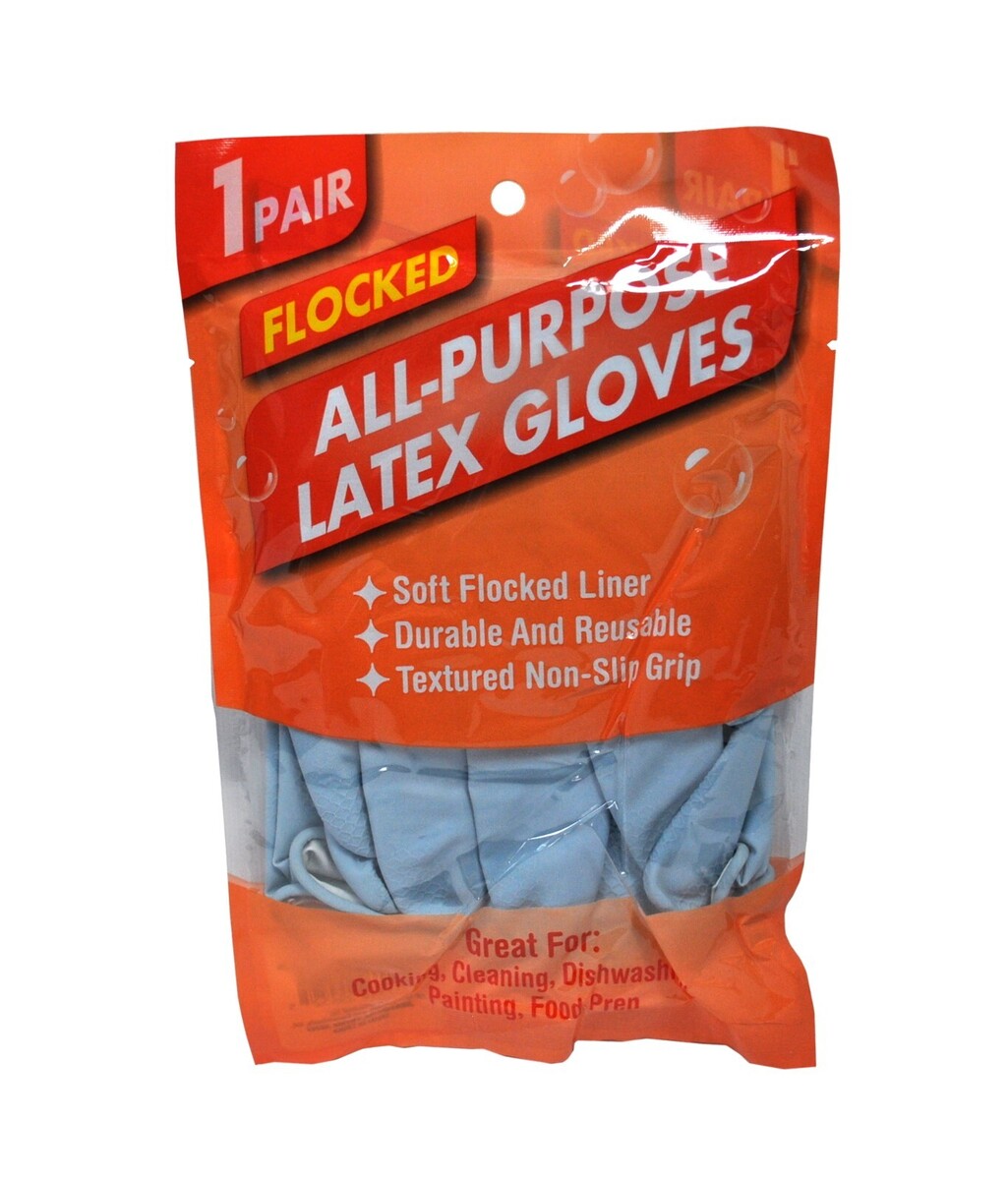 Package Contains: 1 Pair of Flocked All Purpose Latex Gloves.