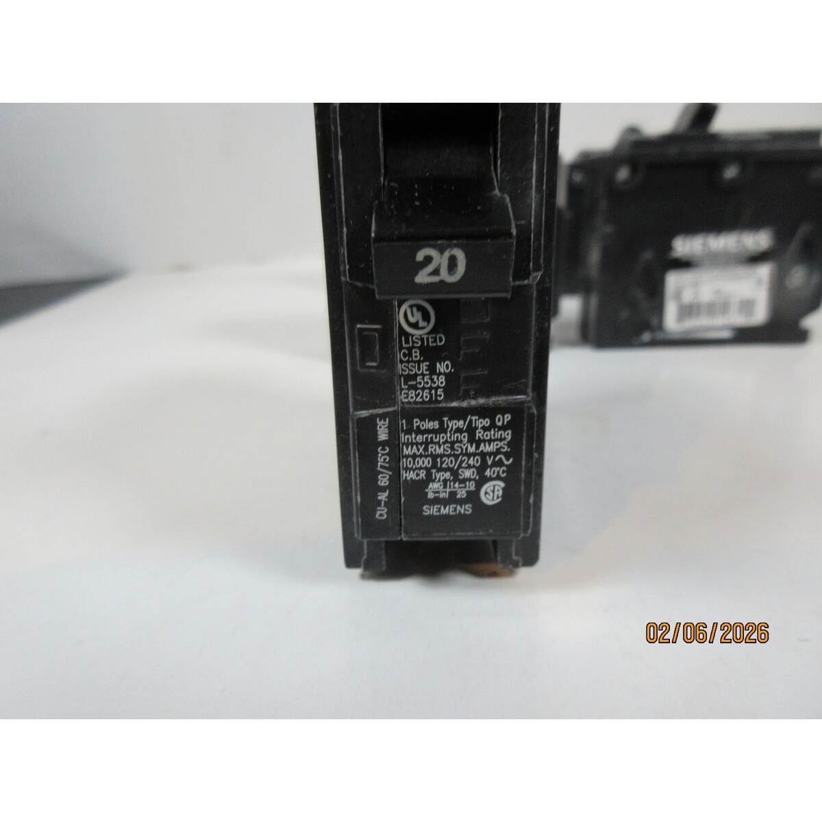 Siemens Q120 20A Single Pole (5)/1 Murray and similar items