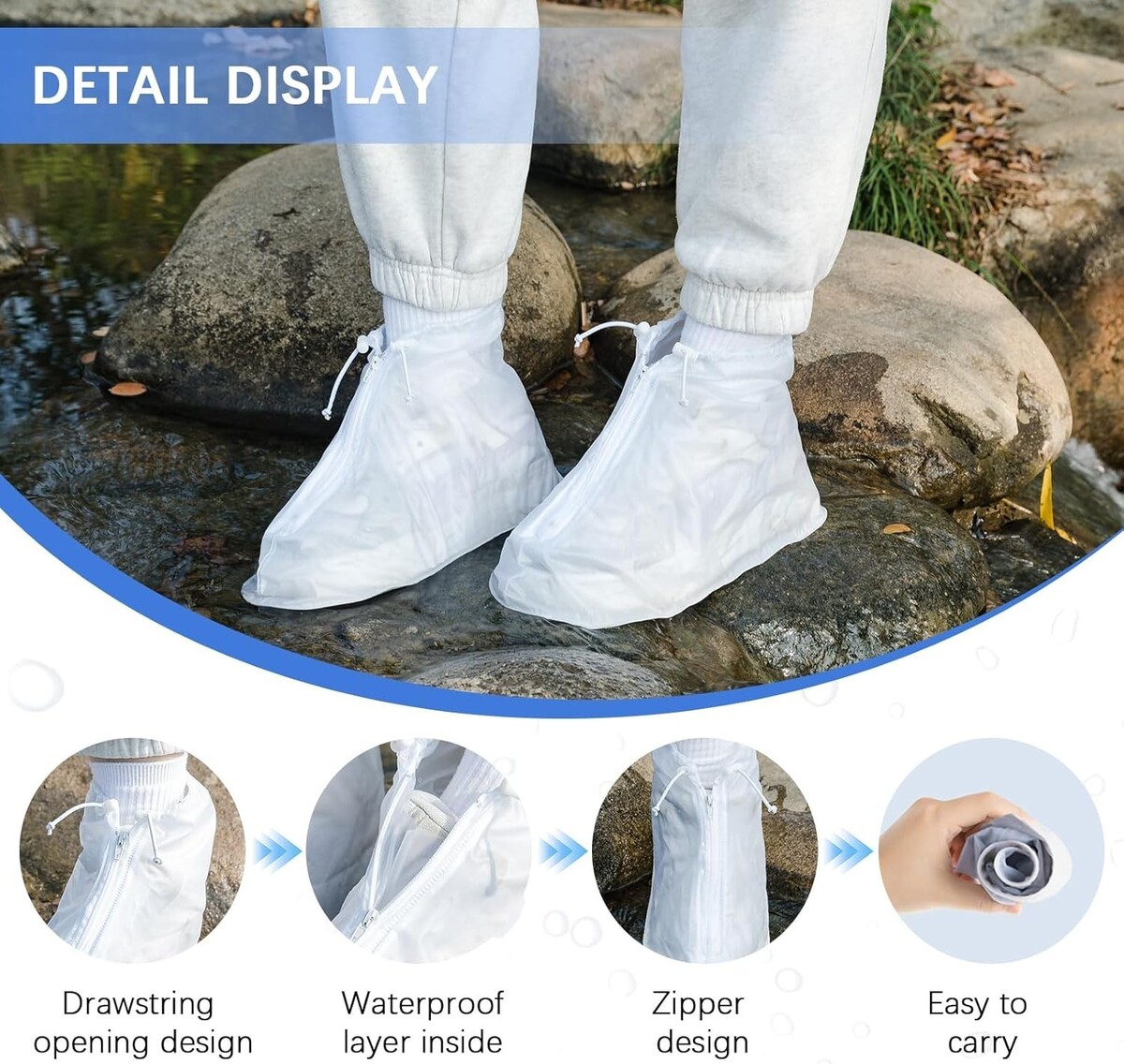 Adjustable Fit ? Effortlessly secure them over your shoes with a smooth side zipper and an adjustable top drawstring, ensuring compatibility with most shoe styles.