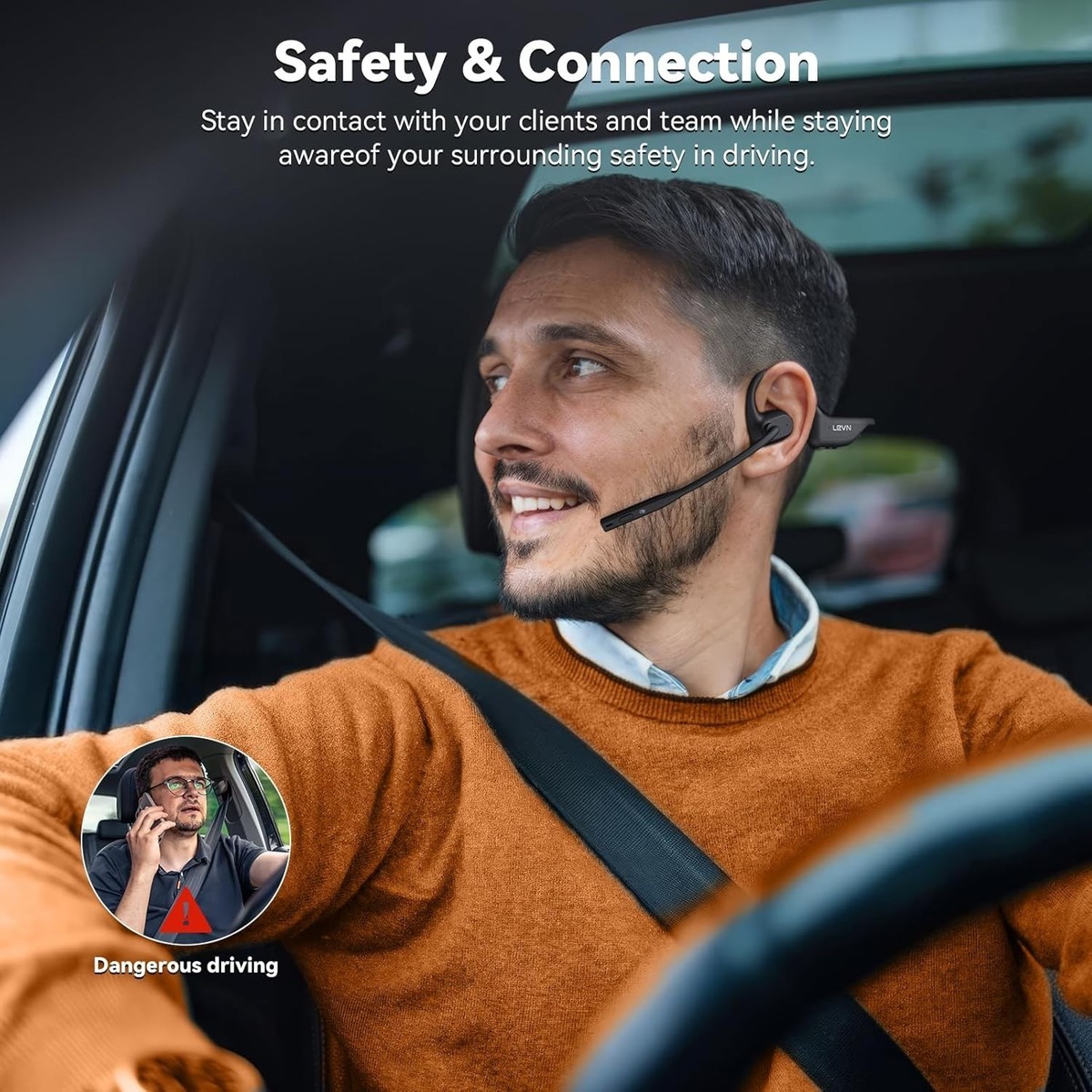 Advanced Noise-Cancellation: Our Bluetooth headset with microphone is equipped with an AI noise cancellation microphone that accurately captures human voices while effectively filtering ambient noise. Whether you're in a bustling office, a noisy gym, or a busy street, it ensures your voice is clearly audible. Bluetooth headphones with mic equipped with a mute button, which makes temporary muting during meetings more convenient, ideal for remote work, online meetings, and driving calls