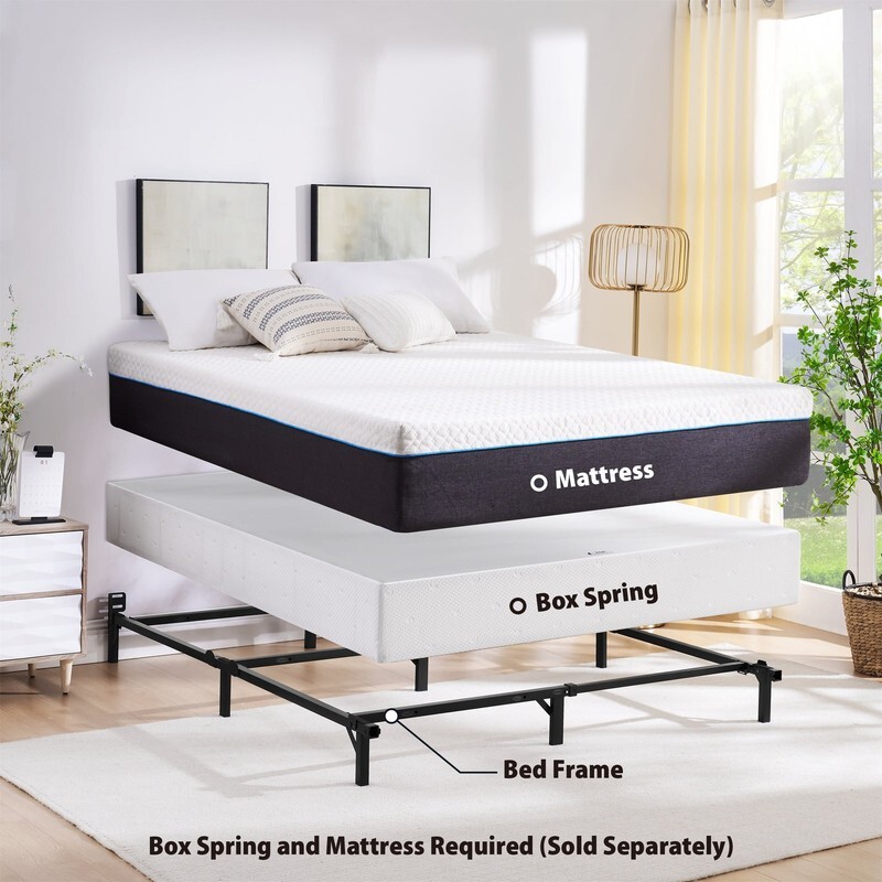 7" Twin/Full/Queen Size Adjustable Metal Bed Frame, Black, Box Spring Required