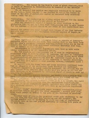An original aboard the U S S Ericsson at Sea newspaper, Printed on soft war time paper. 12 pages with Headline Germany Surrenders dated 29 April 1945. With Ship's information, world news, sports , jokes and much more.,