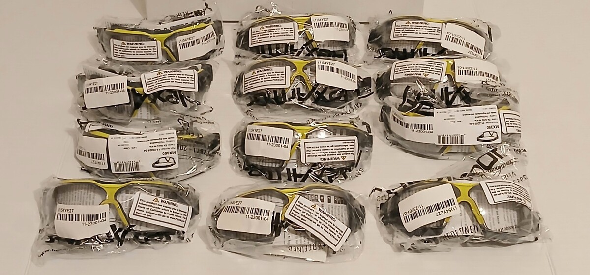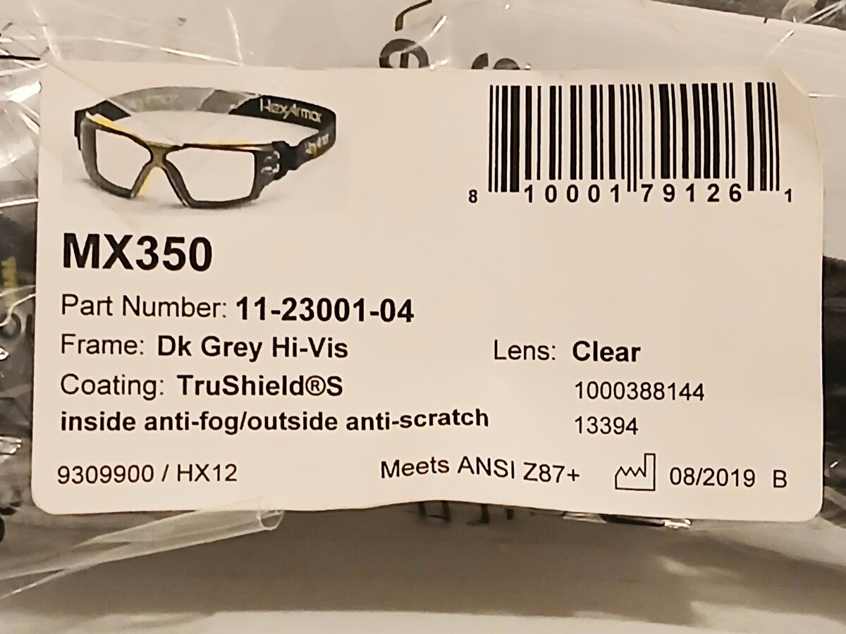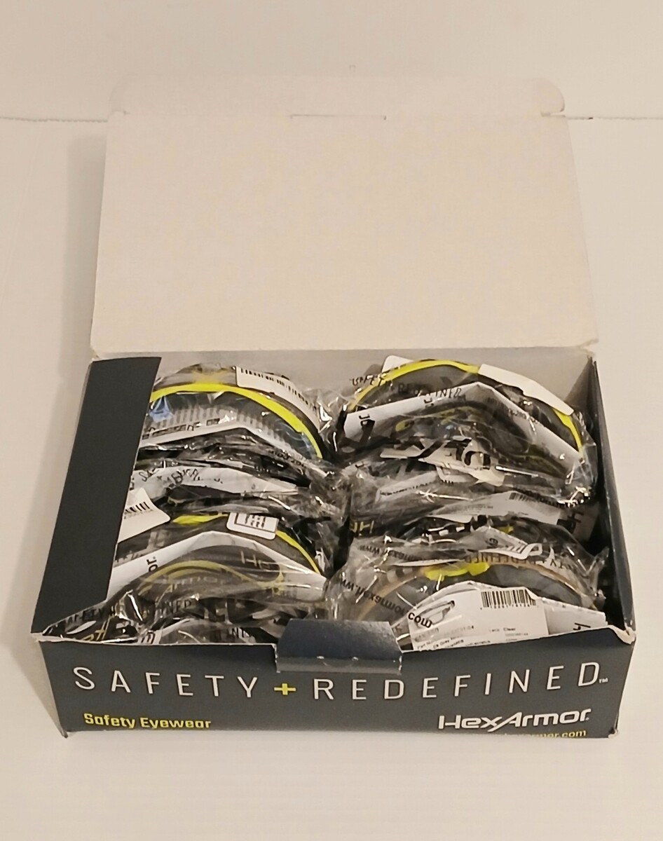 This is a set of 12 Brand New Factory Sealed Hex Armor Safety Glasses MX350. They are Anti Fog Anti Scratch. Let me know if you have any questions. Thankyou for looking