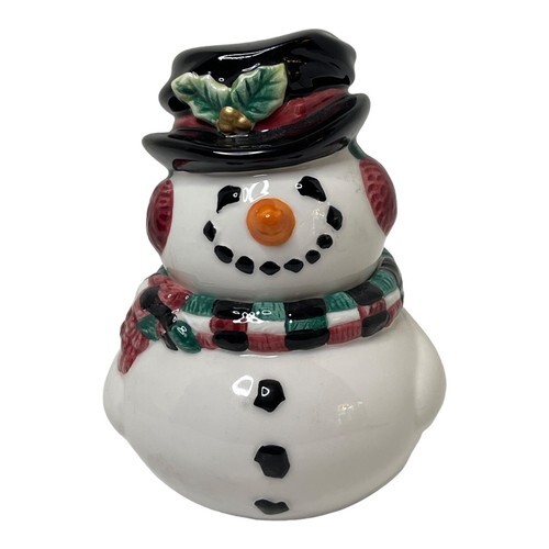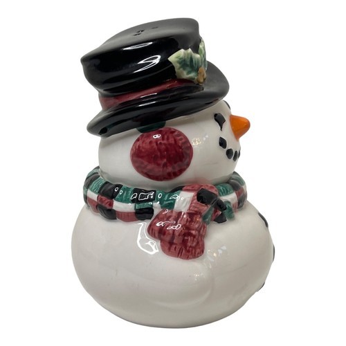 Vtg Fitz & Floyd Essentials Salt & Pepper Shakers Snowman Christmas Stackable