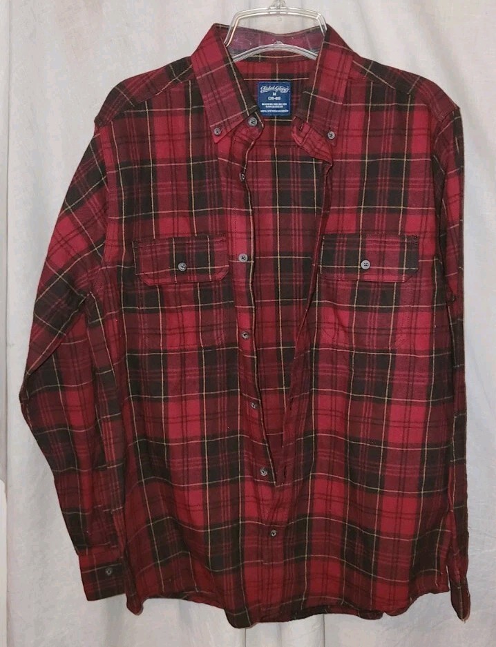 NWT Mens Faded Glory Medium Plaid Long Sleeve Button Front Shirt 38/40 Reds