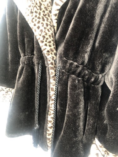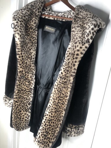 Monterey Fashion Cheetah/Leopard Print Faux Fur Coat Hooded Womens Size Medium M